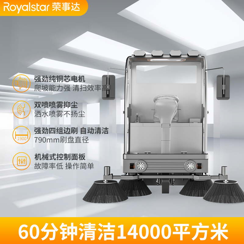 榮事達(dá)RS-CAR200駕駛式掃地車鋰電款,封閉式掃地車,操作簡(jiǎn)單,無懼寒風(fēng)酷暑,自放電率小。