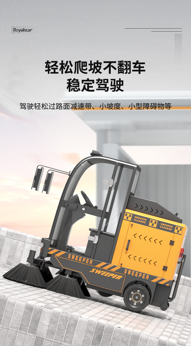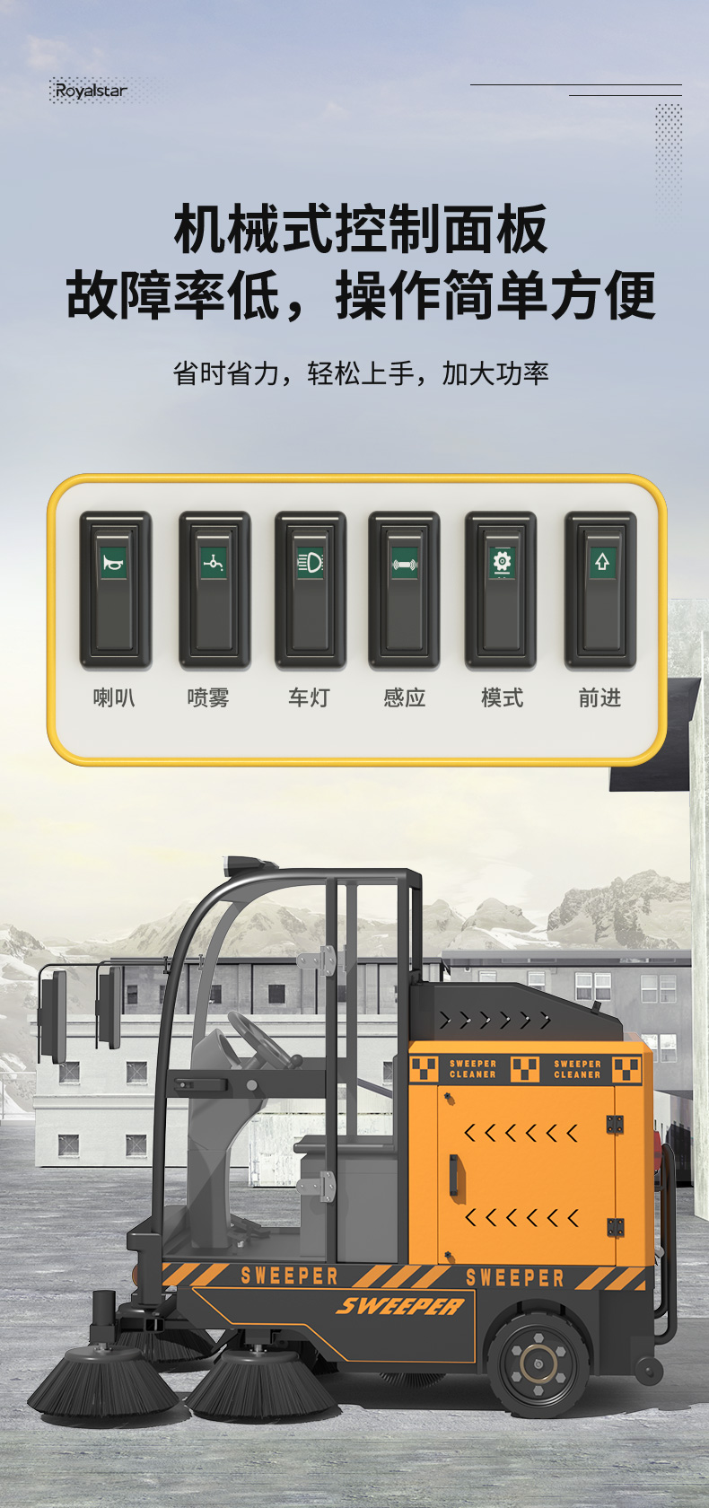榮事達(dá)RS-CAR180 駕駛式掃地機(jī)配備了風(fēng)扇,無需擔(dān)心夏季長時(shí)間戶外使用時(shí)的高溫問題。方向盤操作更加靈活方便,配...
